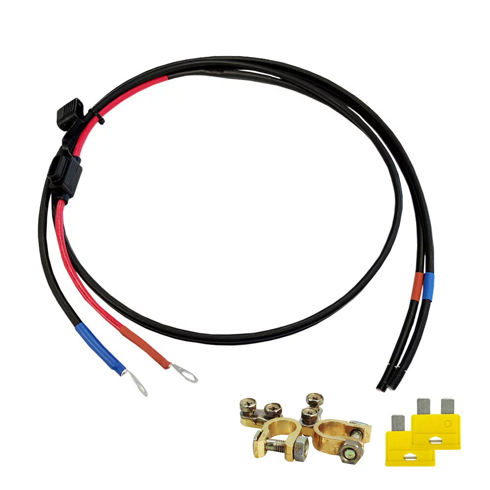 Έτοιμο σετ καλωδίων μπαταρίας. Για εύκολη σύνδεση του ελεγκτή φόρτισης MPPT με την μπαταρία. Το συνολικό μήκος είναι 1,5 μέτρα. Με πάχος καλωδίου 6mm2 επίσης αρκετά βαρύ για μεγαλύτερες εγκαταστάσεις ηλιακού συλλέκτη. Εξοπλισμένο με ενσωματωμένη θήκη ασφάλειας και παρέχεται με ασφάλεια 30A. Αυτή η ασφάλεια είναι μια γενική ασφάλεια αυτοκινήτου που μπορείτε εύκολα να ανταλλάξετε με την ασφάλεια που συνιστά ο ελεγκτής φόρτισης. Εξοπλισμένο με ένα τακτοποιημένο άκρο καλωδίου στη μία πλευρά για σύνδεση με τον ελεγκτή φόρτισης. Εξοπλισμένο με τα δύο μάτια καλωδίων και τους ακροδέκτες μπαταρίας BAKA30 στην άλλη πλευρά. Εάν θέλετε, οι σφιγκτήρες μπαταρίας μπορούν να αφαιρεθούν εύκολα.