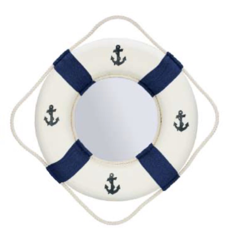 Decorative mirror lifebuoy. Inspired by a marine life preserver.