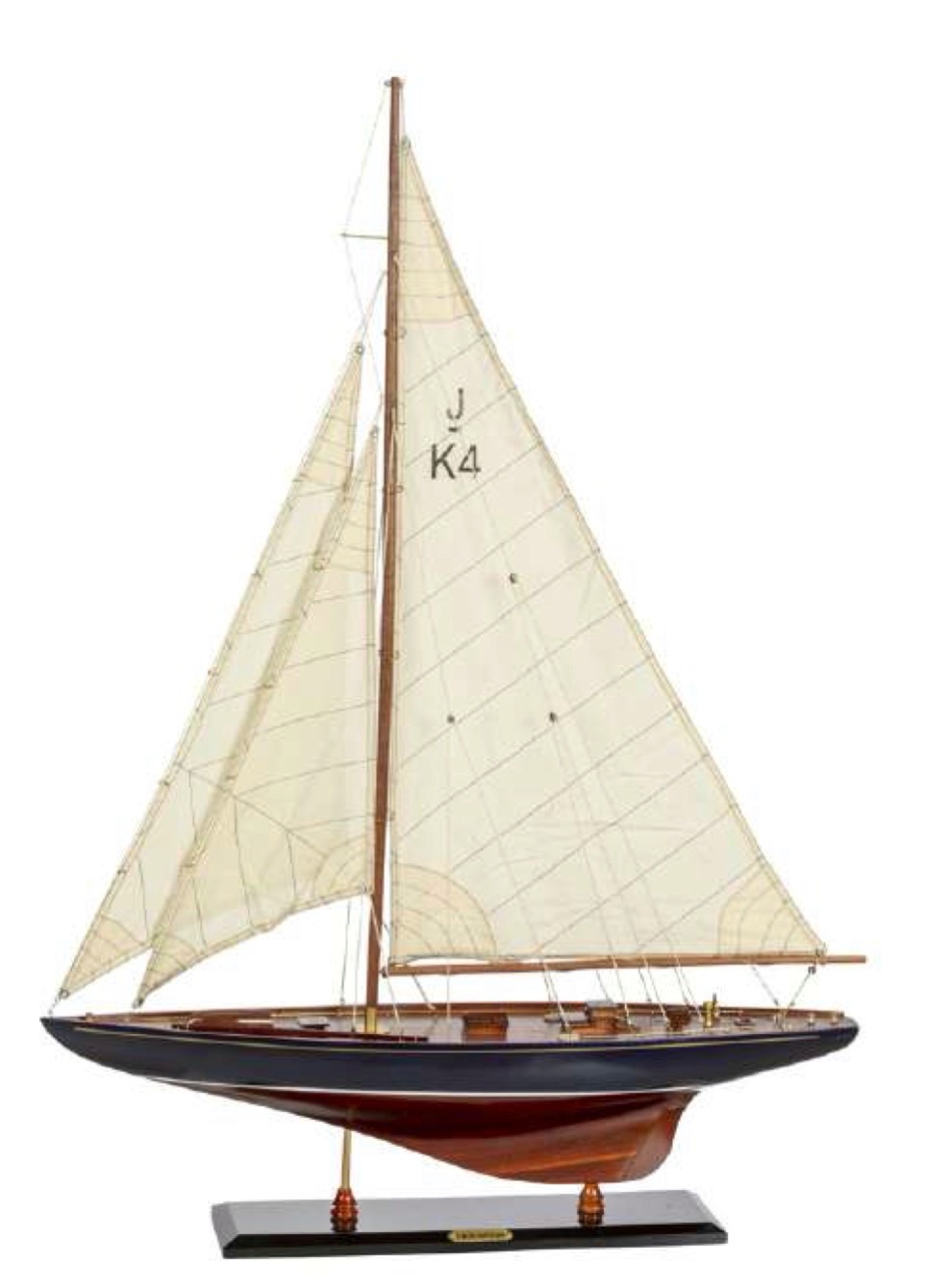 Endeavour (1934) was built to J Class rules for competition in the 1934 America’s Cup. Ordered by Sir Tom Sopwith and built by Camper & Nicholson in Gosport, England, they drew on aeronautical technology to make her faster. Wooden nautical sailboat. Handcrafted. Packaging: Mast disassembled. Boat delivered in individual crates.
