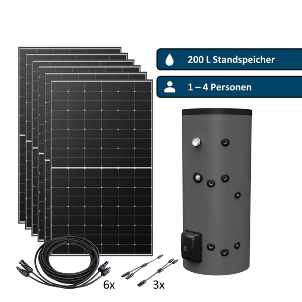 A big advantage of the fothermo standalone storage set is that it does not feed into the power grid, which is why the photovoltaic system does not need to be registered. With the 1,650 W photovoltaic heating output, the fothermo freestanding storage tank offers a simple and effective solution to reduce your hot water costs and save energy at the same time.