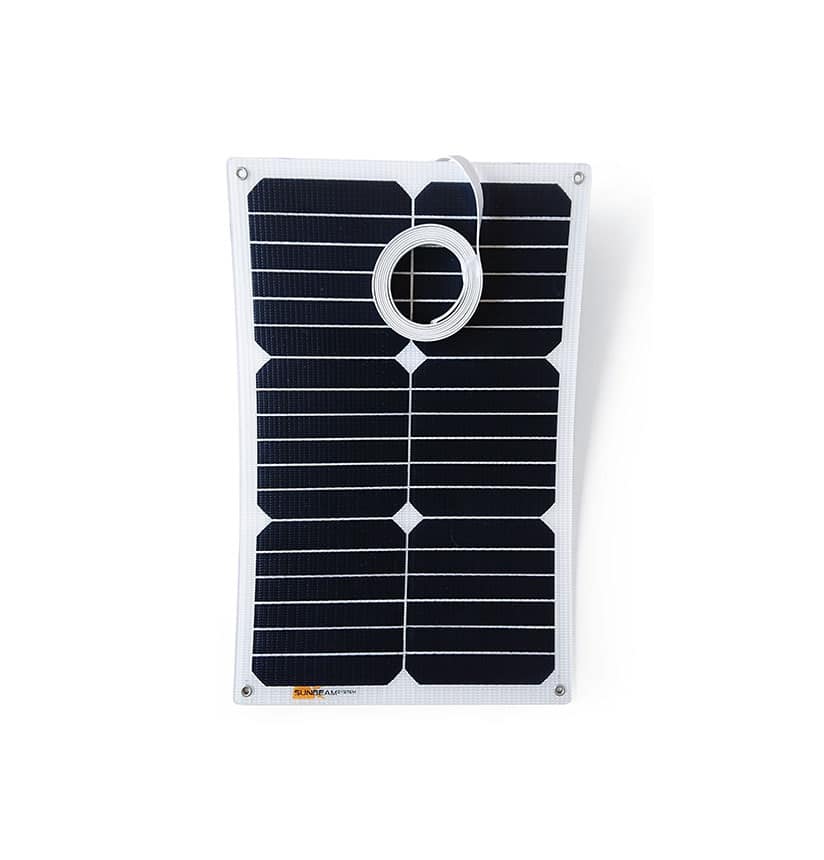The Tough series has proven itself in use over many years. With a wide range of different models, the Tough series offers a universal solution for numerous applications. The Tough surface is the preferred choice for the yacht industry, but also for more industrial off-grid applications. All Tough models are equipped with Sunpower™ Maxeon cells with an efficiency of 22.5% or higher. The surface of the Tough series is robust and highly resistant to strong and prolonged UV exposure. It is more translucent than standard materials, thus contributing to higher daily production. The special Tough textured surface ensures a secure hold, but also captures more light at low sun angles. In addition, all Tough models from 55W upwards are equipped with Shadow Optimized technology, which improves performance in partial shade. At just 3 mm thick, the panels can be seamlessly attached to any hard surface. Their slight flexibility also allows installation on slightly curved surfaces. The flat "flush" connection cable exits the back of the panel. It can therefore be routed directly underneath the panel into the interior. We recommend a soft, flexible adhesive.